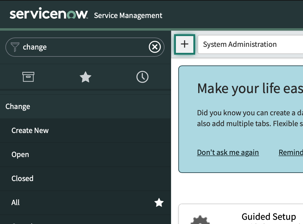 Click on Change > Open to get a list of all open Change Requests. Open any of Change Request from the list and right click on the top of the form as shown below to select Configure > UI Actions: