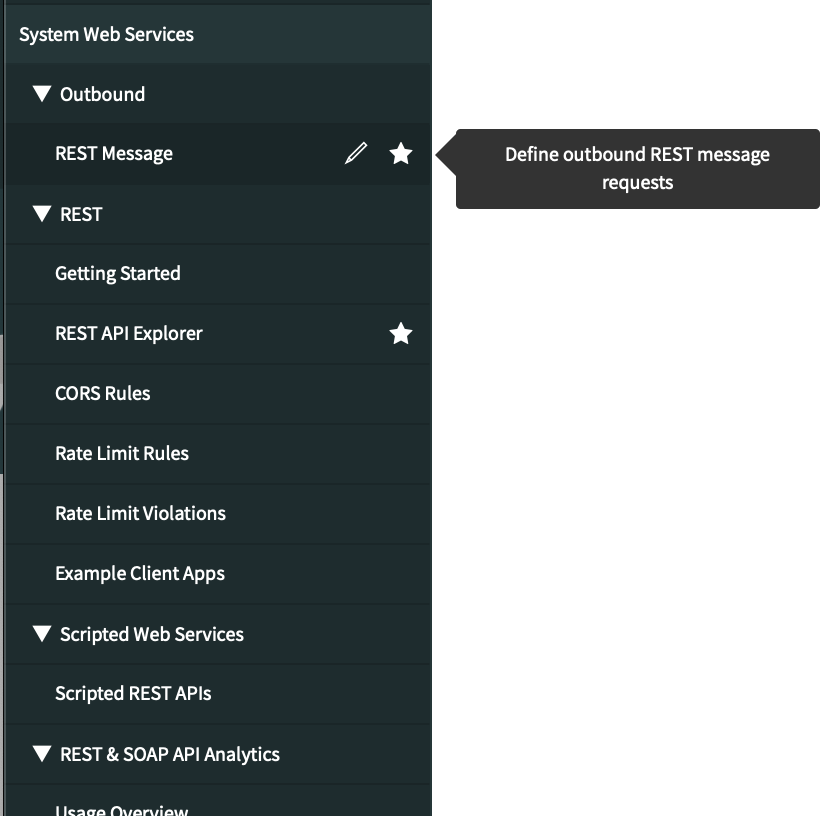 The first step is to define the REST call you need to make. To do this, type ‘REST’ on the navigation filter box and, from the results, select System Web Services > Outbound > REST Message: