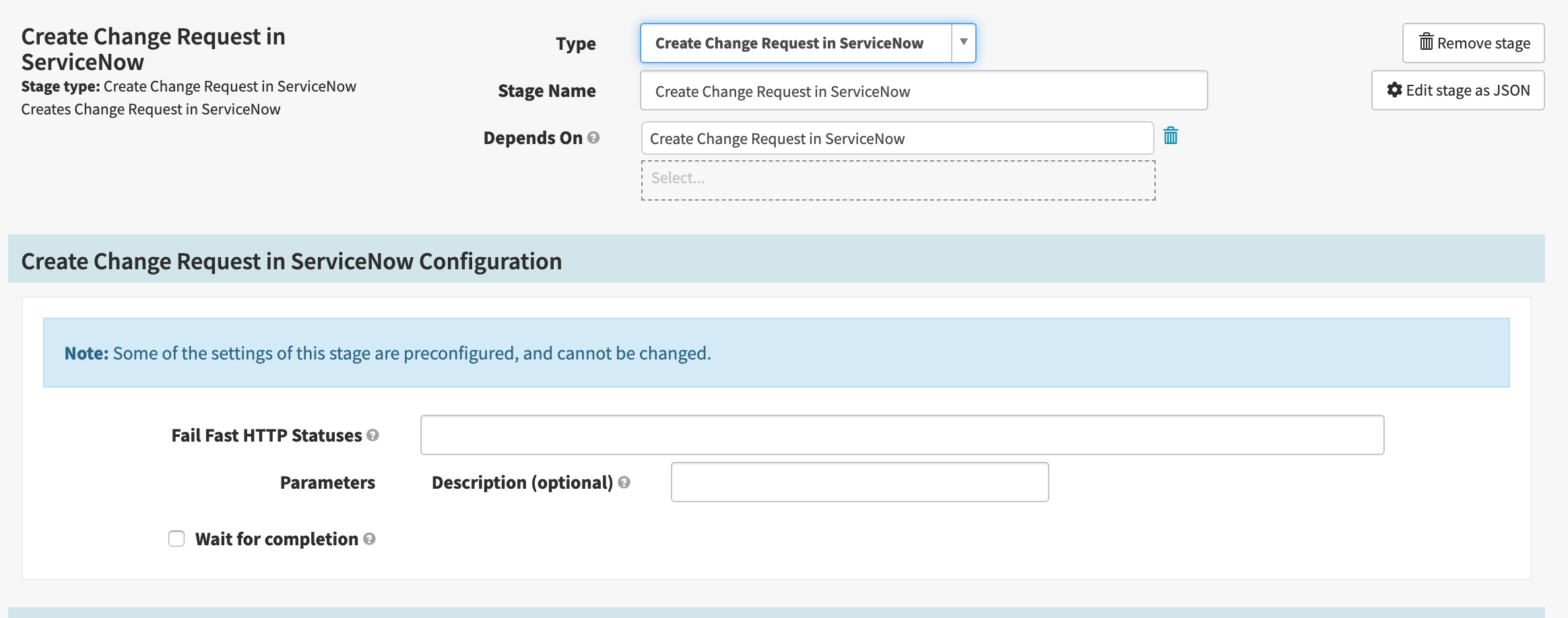 Using a custom webhook stage to create a Change Request in ServiceNow