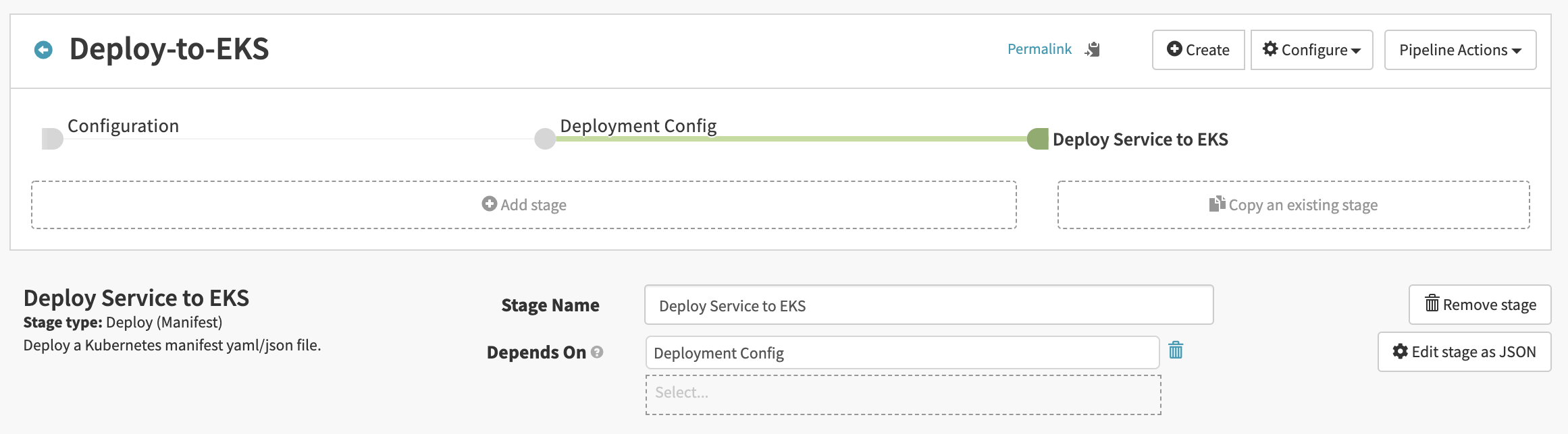 Copy and paste the following example into the text field in the 2nd Deploy Manifest stage.