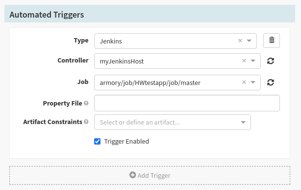 Define how your pipeline is triggered. Scroll down to the Automated Triggers section and click Add Trigger. This section enables you to select a Type:
